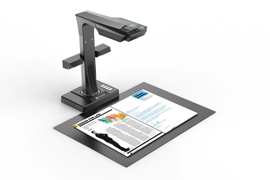 Adjustable overhead LEDs and a detachable side light bar help reduce glare when scanning magazines, glossy pages, or laminated documents—supporting consistent results.